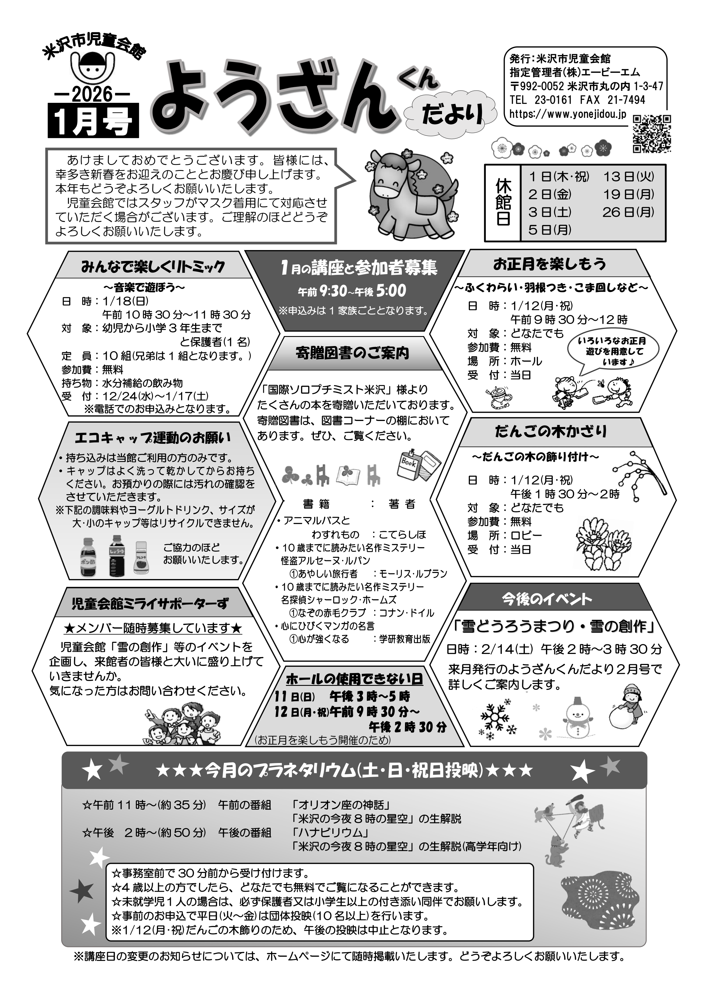 ようざんくんだより1月号配布と月間予定表公開のお知らせ